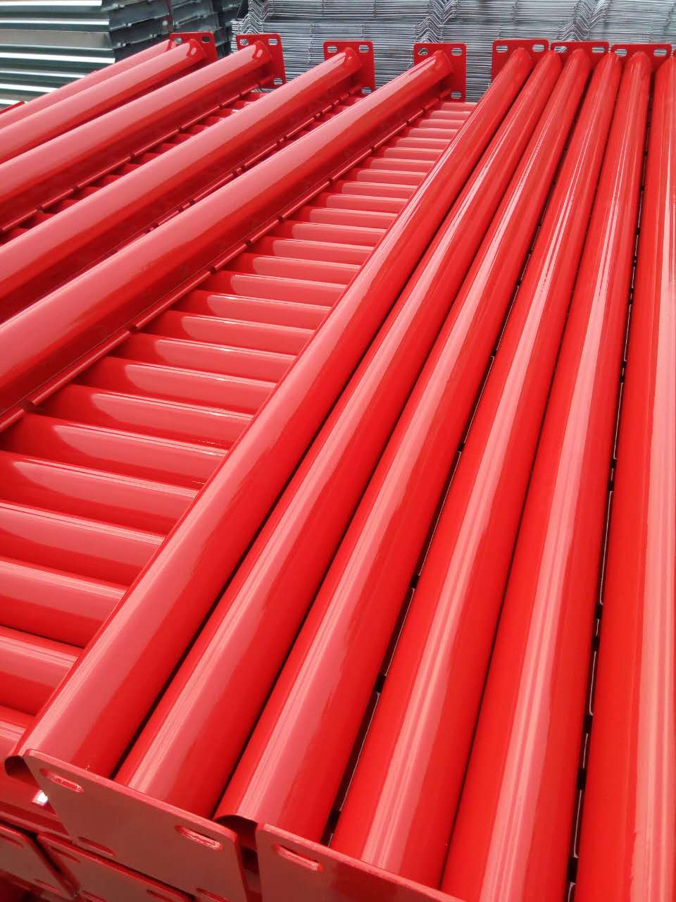 4. 取件打包:護(hù)欄網(wǎng)及其立柱配件通過完流水線后將其取下,用塑封防撞膜打包入庫(kù)。
